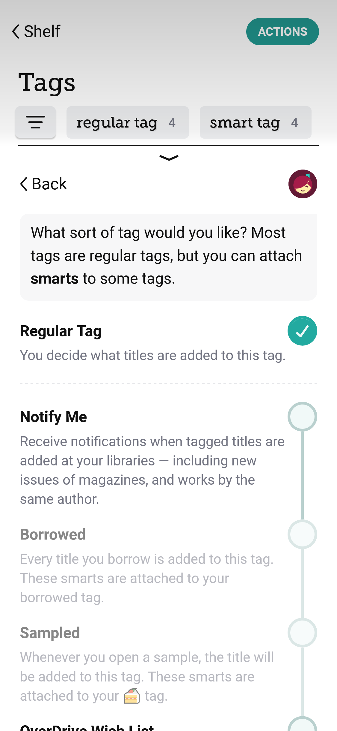- (Valfrjálst) Breyttu merkinu í snjallmerki, eins og OverDrive óskalista eða Láttu mig vita snjallmerki.