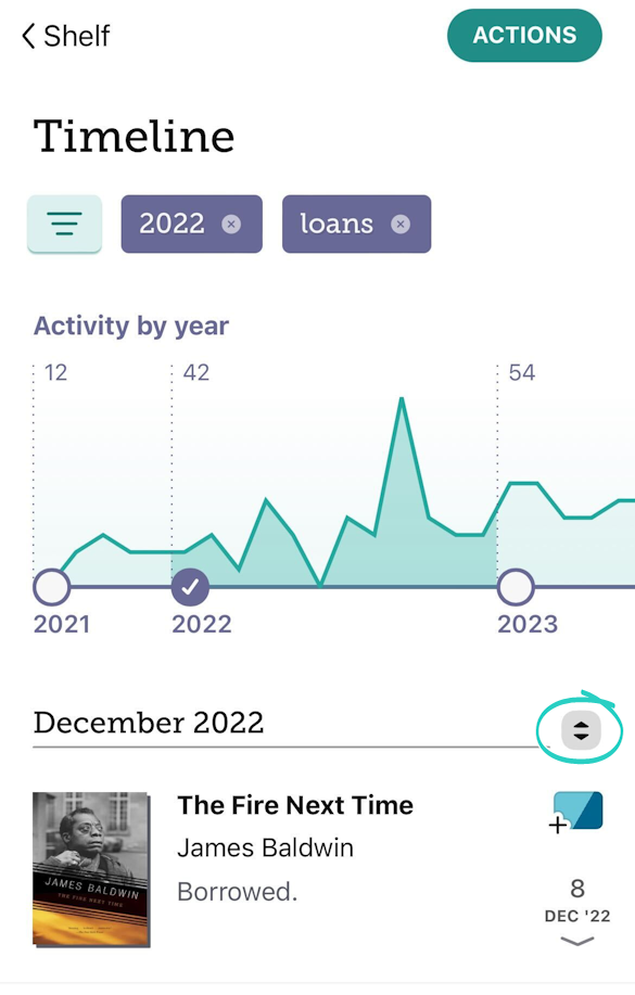 Apabila anda menapis mengikut tahun, ketik penapis tahun yang diaktifkan untuk melihat pecahan bulan ke bulan aktiviti anda. Penapis anda yang lain (seperti penapis Pinjaman dalam tangkapan skrin di bawah) akan diaktifkan apabila anda melihat graf ini. Nombor di atas graf menunjukkan bulan yang ada paling banyak aktiviti.
